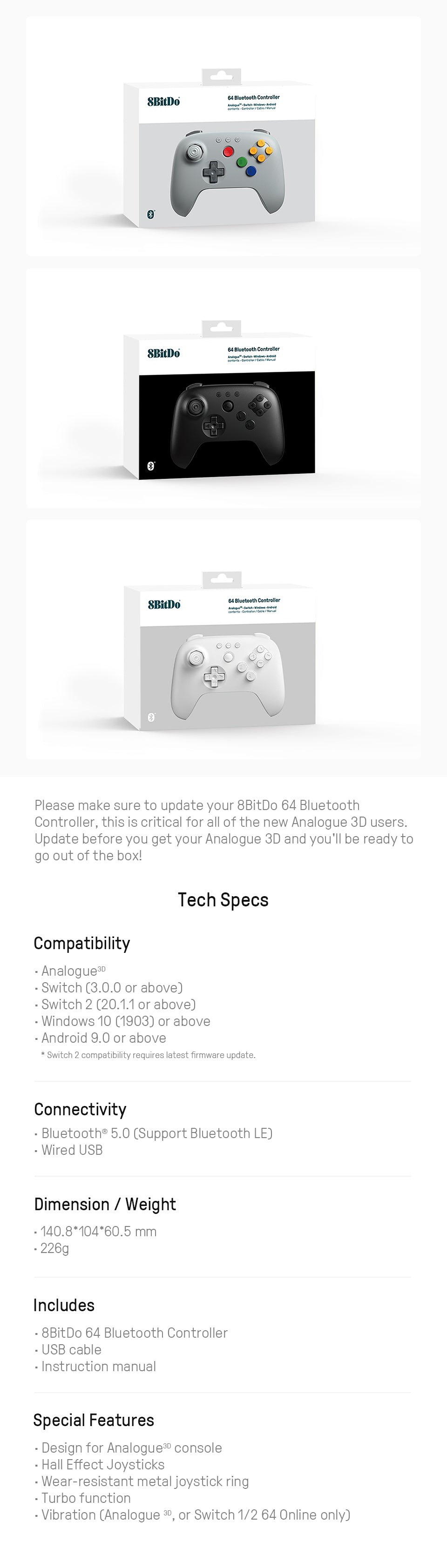 8BitDo 64 Bluetooth Controller for Analogue 3D