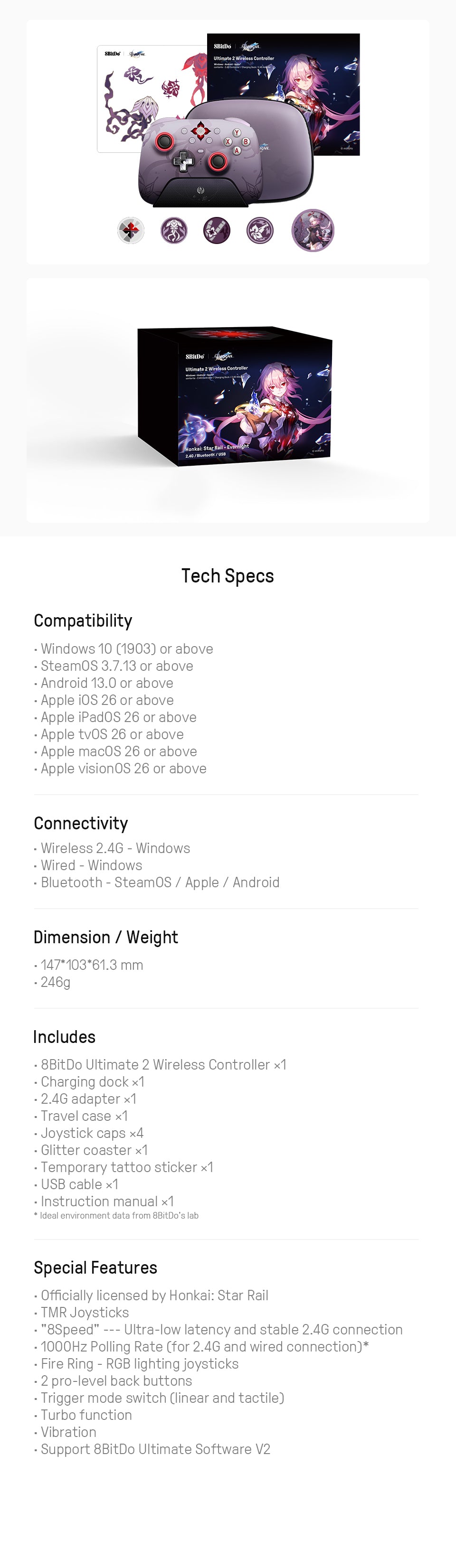 8BitDo Ultimate 2 Wireless Controller (Honkai: Star Rail – Evernight)