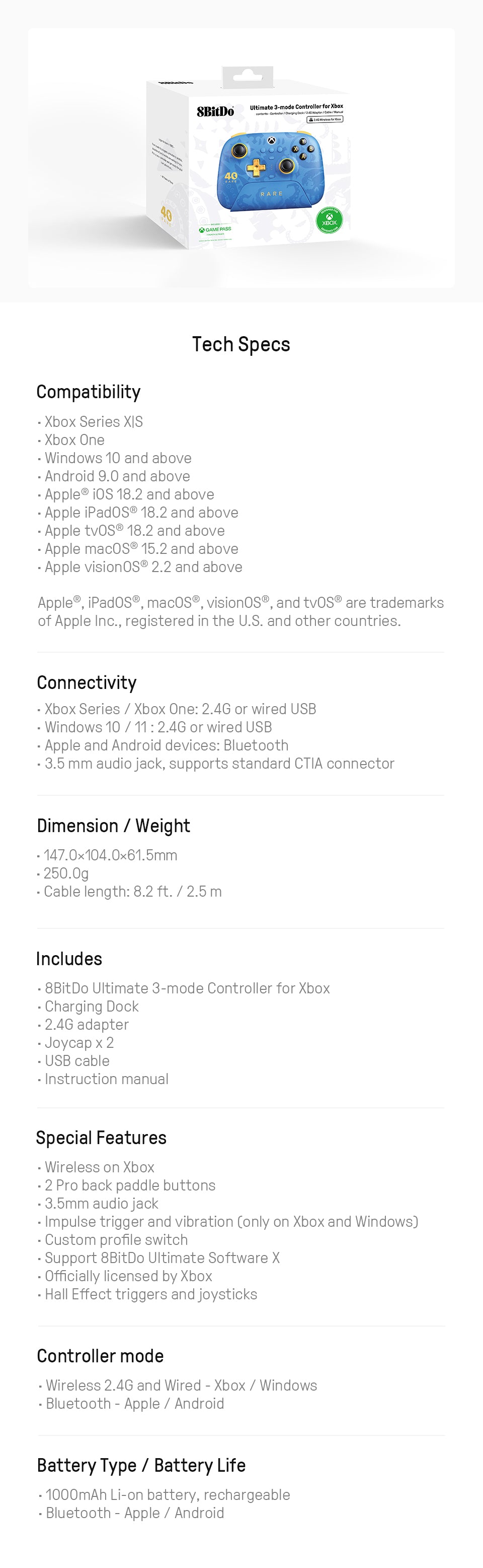 2.4G Controller, All Products, Game Controllers, XBOX x 8BitDo
